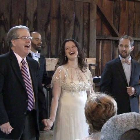 “When Fritz and I got married, it was supposed to be outside, but it was raining, so my dad, brother, and uncle strung white lights in the activities shed there and turned it into a beautiful impromptu venue. During the ceremony, my dad and Fritz’s mom sang Harry Chapin’s ‘Circle.’ Dad started it. Fritz’s mom sang the second part. Fritz and I joined in. By the end, everyone was singing the chorus.”